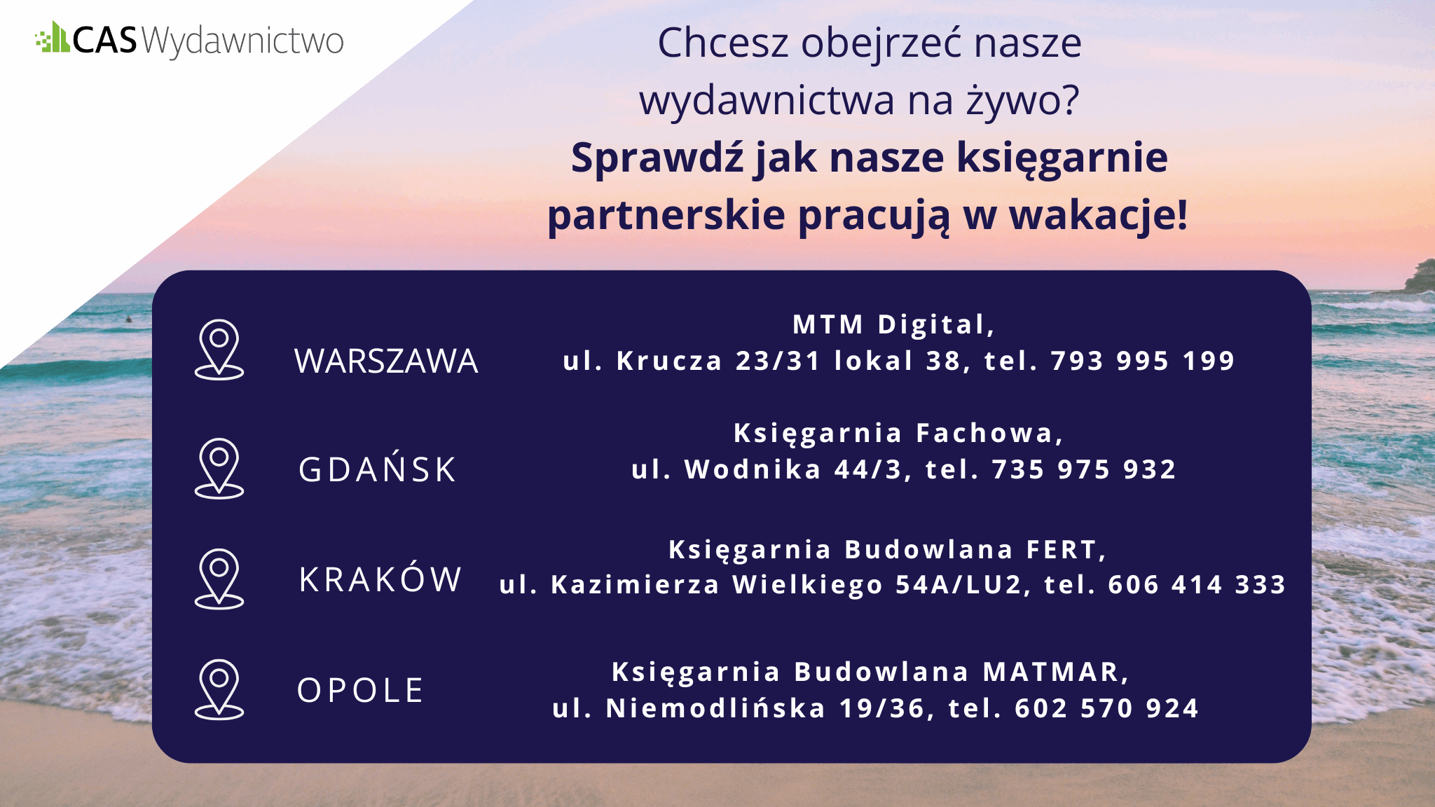 Sprawdź jak nasze księgarnie partnerskie pracują w wakacje! To świetna okazja, by przekonać się o jakości naszych wydawnictw i poszukać inspiracji.